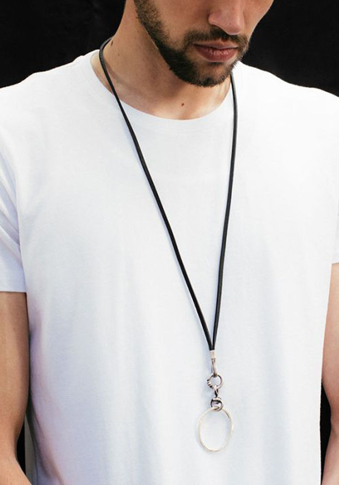 Keystrap features black vegetable tanned leather strap with a rings made from one piece of Sterling silver from WERKSTATT MÜNCHEN.