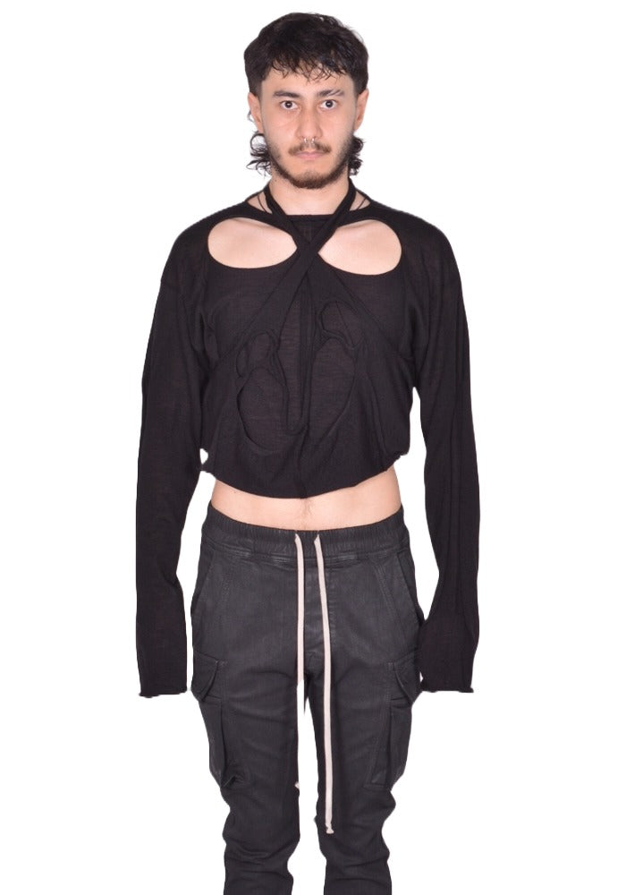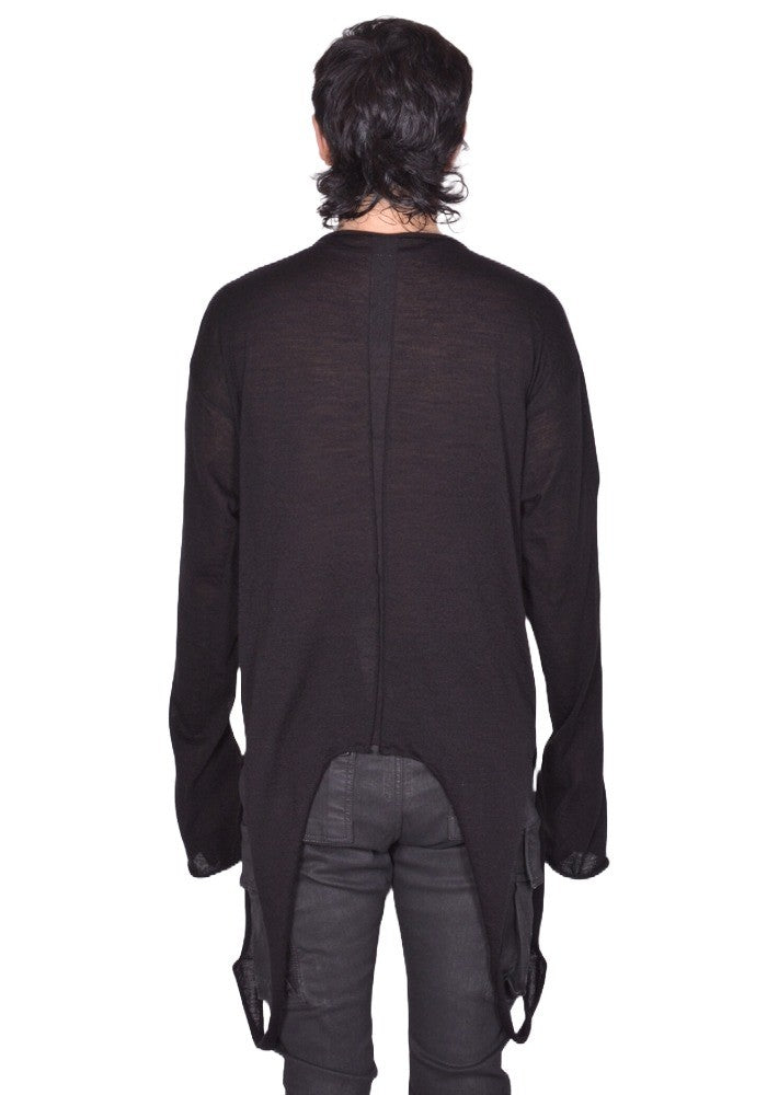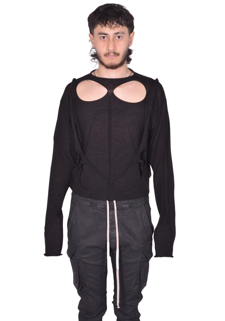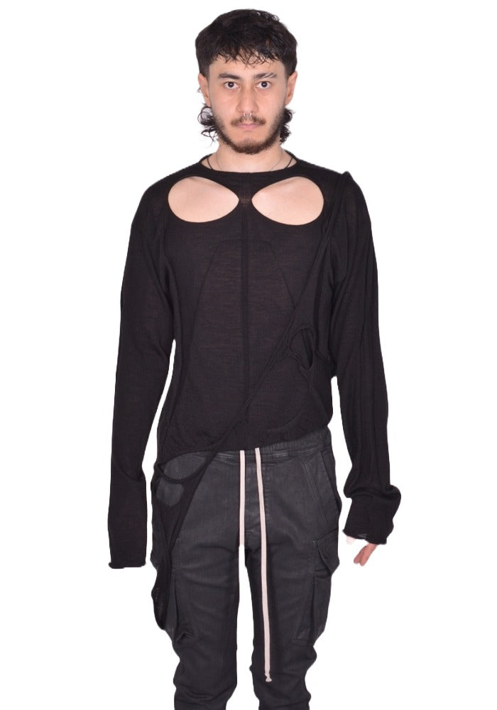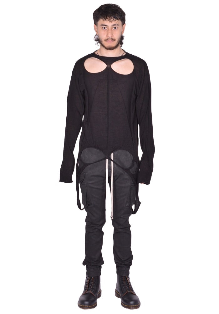 RICK OWENS MEN RU02E1671 ML SLASHED KNIT PULLOVER BLACK(New SeasonFW25)