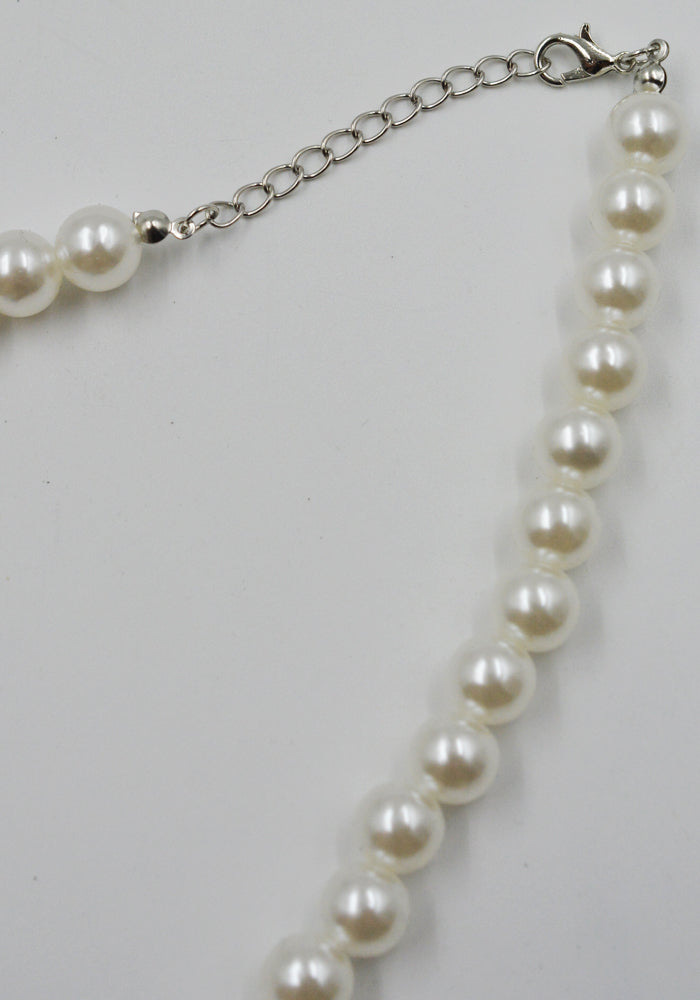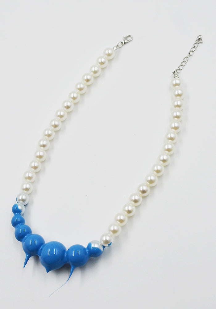 Blue rubber-dipped faux pearl necklace with silver tone chain and spring-ring clasp from Ottolinger 2025FW collection.