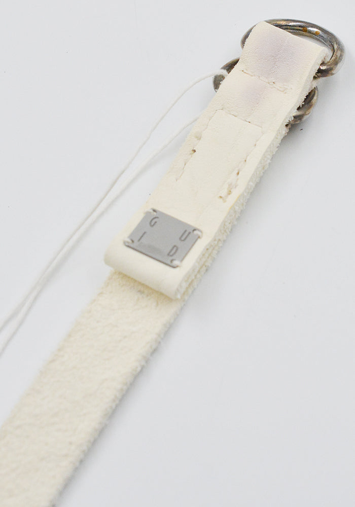 100% bison full grain leather, Unisex belt in white with double D-buckle closure from Guidi Collection.