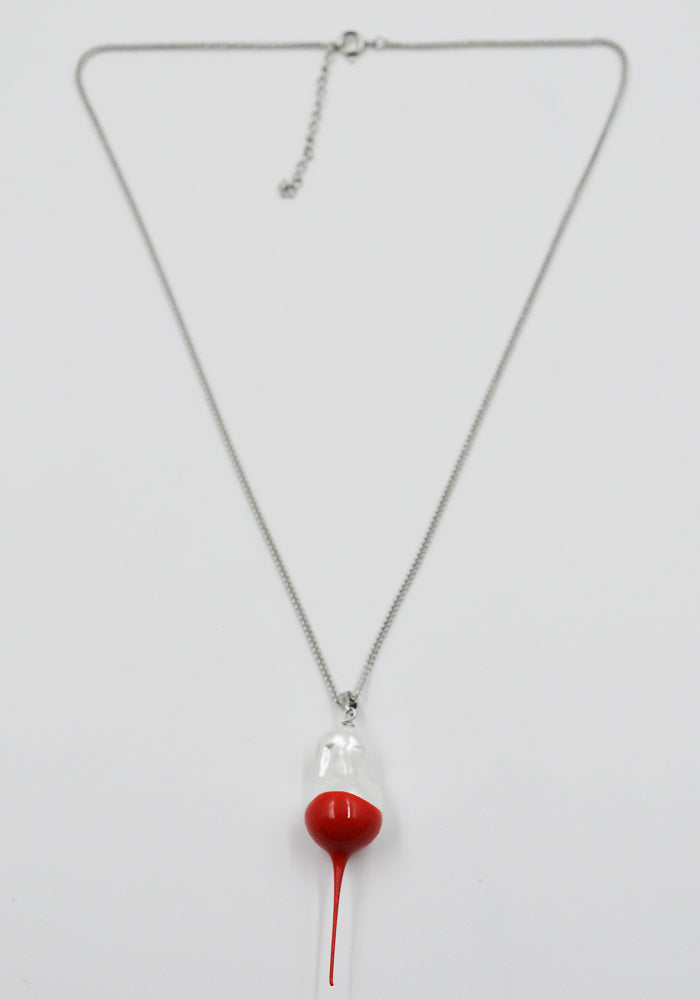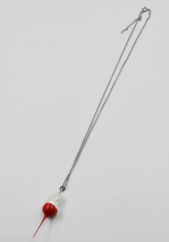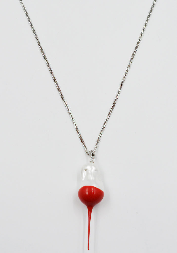 Silver tone chain necklace with a red rubber-dipped faux pearl pendant top  from Ottolinger 2025FW collection.